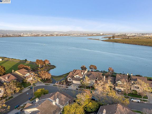 Sweeping, unobstructed, spectacular views await you at 3329 Washington Court. This Waterford Cove contemporary home boasts an exceptional setting and superior upgrades. The open floor plan is view-oriented, and includes living and dining areas with vaulted ceilings, a kitchen/family room "great room" opening to the back yard, and a bedroom and full bath on the main level. The private primary suite features a spa-like bathroom and expansive views. The bonus room with fireplace makes for a great 5th bedroom. This meticulously maintained home features so many quality upgrades, including owned solar panels, EV charger, dual paned windows, and extra attic storage. Chefs will appreciate the beefy six-burner Dacor gas range, stainless side-by-side fridge, composite quartz counters, and custom cabinetry. The kitchen sink faces the view--wanna fight for who does the dishes? And this place is party central! The generous outdoor gathering space is designed for maximum fun. Great viewing of shorebirds and the occasional seal by day, city lights and fireworks by night. The desirable East End location is close to top schools, neighborhood shopping, dining and transportation options. Cross the pedestrian bridge to access the Bay Trail or play a round at the nearby municipal golf course. Wow!