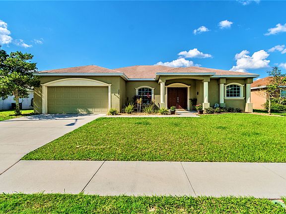 STOP THE CAR!! This is the home you've been waiting for! One of the largest floor plans in the community featuring 5 bedrooms, a formal sitting area and a HUGE kitchen! Walking inside you quickly realize that the owners have METICULOUSLY cared for their home. NO honey do lists left for the buyer to do; simply move your boxes in and unpack. Natural lighting shines throughout complementing the wide open floor plan. Some of the upgrades include trey ceilings, LED lighting, dual pane windows, luxury vinyl floor planking and did we mention 5 bedrooms? The family room dominates the home in size and is the center point for entertainment, the kitchen overlooks it and has a breakfast bar with tons of counter top space for the chef of the home. It seems like you'll never run out of cabinet space! The master bedroom is ENORMOUS in size and is ready for some of the largest furniture as well as having a sliding door to the screened in lanai. Heading toward the on-suite you pass 2 walk-in closets and then the hallway opens up to your soaking tub, dual vanities and a separate stand up shower. When it's time to unwind it seems that the covered lanai is the perfect spot for it! The yard has more than enough room for a new pool (if that's your thing) or just the perfect spot for entertaining and bbq'ing. When it's time to go to town the grocery stores, shopping malls, restaurants and even healthcare are just a few quick minutes away. Get by and see this home today, you'll be glad that you did.