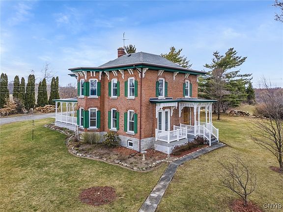 Come and take a look at this beautifully maintained 2700+ square foot home. As you walk through the home take notice of the beautiful wood trim, wood stair case, and more. Upstairs enjoy the history of the home with finished wood plank floors. 3 large bedrooms and 2 full bathrooms. This property is nestled in the middle of open fields for miles. Enjoy the scenic views out on your multiple porch areas surrounding the home. Property is near Owasco Lake and Cayuga Lake for you and your family to enjoy. Easy to start gardening this spring due to owner having a garden for many years. Multiple berry bushes on the land for you and your family to enjoy. The current owner uses the wood burning boiler outside for main heat source. The wood that is cut and ready to burn on the property will stay for the new buyers. 2 car detached garage with work shop area handy for all projects.