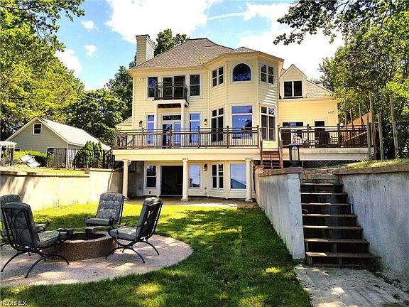 Spectacular lake front colonial where almost every room has a break taking view of Lake Erie built on over an acre of beautifully landscaped property. Inside you'll find the best of everything: impressive Brazilian walnut floors, 10' ceilings, a two story foyer, formal dining room, great room with a gas fireplace that opens to a wrap-around deck with stairs that offer easy access to the Lake Erie side of the property. Magnificent kitchen with granite counter tops, cherry cabinets and eat-in kitchen area that also opens to Lake Erie. Sweeping staircase leads to picture perfect master suite with another amazing view, vaulted ceilings, a gas fireplace, walk-in closets & a master bathroom that takes you away. . . Partially finished walk-out basement with a woodburning fireplace & full bathroom that features a steam shower room. Walk-out of the basement to a stamped concrete patio that overlooks the lake. Five car garage!