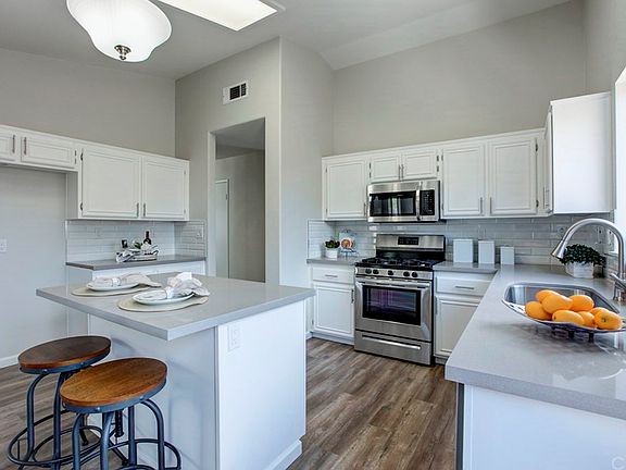 Highly upgraded and professionally designed modern single level three bedroom two bath home located in the sought after California Tradewinds community. This home has just gone through a complete remodel. Upgraded flooring, upgraded baseboards, new dual pane windows, new dual pane sliders and recessed lighting throughout the home. The kitchens offers stainless steel appliances, upgraded stone counter tops, custom back splash, brand new custom cabinets and an island with breakfast bar. Highly desired open concept layout where the family room is open to the kitchen and dining area. There is a large living room open to a formal dining area. Ample natural light flows through out the home. Master bedroom offers a highly upgraded en suite with dual vanities, large walk in shower finished off with modern touches. The backyard has a trellis covered patio perfect for entertaining and a grass area. California Tradewinds is centrally located to everything that Temecula has to offer from the award winning schools, great shopping, parks, golfing and bordering Temecula wine country.