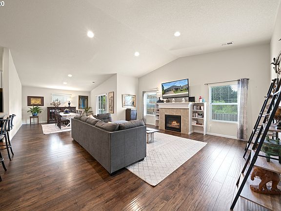 Single level 4BR or Den/2BA w/many builder upgrades & features! Great room floorplan w/gourmet kitchen, stainless steel & gas appliances, vaulted ceilings & views of protected green space out back. Private owner's suite w/soaking tub & walk in closet. Enjoy the backyard oasis complete fire pit, water feature, pergola & garden boxes. Oversized 2 car garage, extra deep w/room for shop + pre-wired for 240 outlet. Last easy commute to downtown PDX, only 30 min! Open Sat 8-15-2020 from 1-3pm.