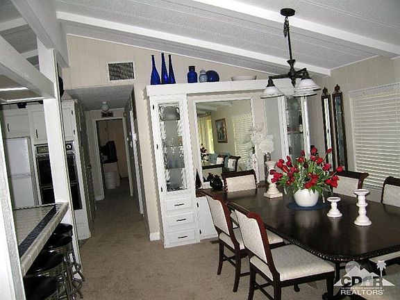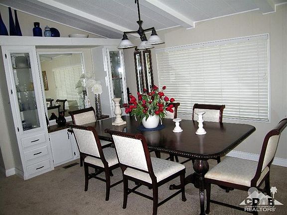 This lovely 2 bedroom, 2 bath bright and cheery home is located on the #14 Fairway of the Millennium Golf Course in Tri Palm Estates & Country Club, an active 55+ golf course community in the Palm Springs area. This home is being offered furnished, turnkey (the Dining Room Set is available for purchase outside of escrow) and offers many nice features, including, dual pane windows, security shutters on two front windows facing the golf course, ceramic tile kitchen counters, freshly cleaned carpet and cathedral ceilings. Enjoy unlimited golf for two owners on either the 18-hole or 9-hole course, pools, hot tubs, Clubhouse with restaurant & bar, tennis, pickleball and shuffleboard courts, and numerous social clubs and activities included in the monthly maintenance fee. All the amenities of a fine country club at an affordable price.