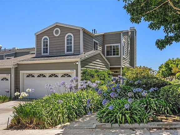Perfectly positioned for privacy & panoramic canyon and ocean vistas, welcome to 33296 Ocean Ridge in the gated haven of Marinita Townhomes. This 3 bedroom, 2.5 bath end unit enjoys an oversized driveway that leads to a lovely walkway surrounded by lush mature landscaping ~ a perk exclusive to this home’s location! Enter the freshly painted charmer onto gorgeous oak flooring. Natural light abounds from floor to tall ceilinged windows, perfectly placed to capture views of the private hillside, canyon and sparkling ocean. Nestled against the dining room is the generously sized living room complete with wood burning fireplace. The living room opens to the wonderfully remodeled chefs kitchen, with stainless steel appliances, walk in pantry, large oversized island and countertop seating. Walk through the breakfast nook out your upgraded slider and immerse yourself in nature on your wrap around stone patio. Enjoy the breathtaking views, caressed by ocean breezes in complete privacy. Back inside on your way upstairs peek in at your guest bathroom, tastefully updated with custom Italian tile. Upstairs the primary suite is sweet indeed! Panoramic canyon and ocean vistas set the back drop for a sizeable bedroom with another wood burning fireplace and cathedral ceiling crowned with a beautiful plantation ceiling fan. The primary bathroom boasts a paneled walk in closet, oversized double vanity and incredible views from your large soaking tub & separate shower. The secondary bedrooms enjoy paneled closets, mirrored doors, plantation ceiling fans & more of those exclusive private views. Repiped, newer oversized water heater, A/C, 2 car garage plus oversized driveway, laundry closet complete with washer and dryer — all in a gated community with a relaxing pool, choice of 2 spas, recreation area & tennis courts. Less than 2 miles to downtown Dana Point shopping, dining, the Dana Point Harbor & world famous beaches. Incredible privacy, breathtaking views, endearing charm ~ this one won’t last!