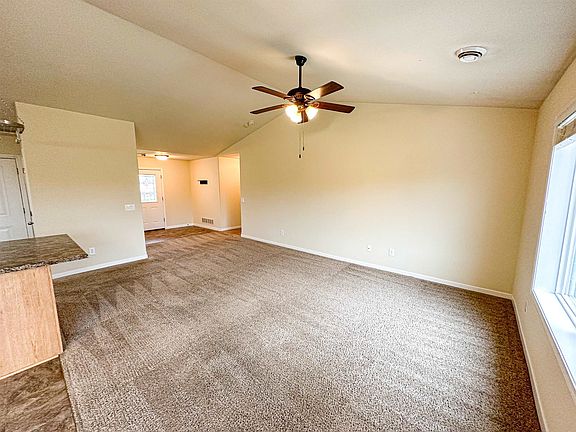 This one level home is sure to fit all your wants and needs! When you walk in, you're welcomed by the open floor plan that is enhanced by vaulted ceiling's and large picturesque windows. The large living room leads into the dining room and kitchen. The beautiful kitchen boasts custom rustic cabinets, a pantry, and an island with snack bar. Continue down the hall to the two nice size bedrooms, the full bathroom that contains a linen closet, and the master suite. The huge master suite has a great walk in closet and it's own private three-quarter bath with tons of storage. All of this combined with a large finished three stall garage, fantastic fenced in backyard with easy access to a park furnished playground, and the bonus of small town living makes this the perfect home!