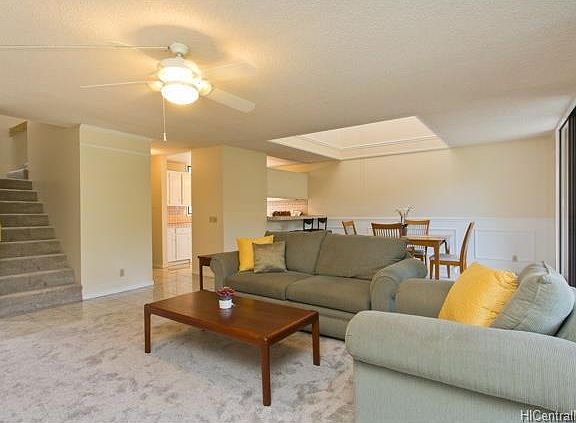 Lovely 2-story 3bd/2.5 ba END unit at desirable Gardenia Manor with TWO COVERED parking! Enjoy high ceilings, spacious living and dining room area, with large lanai perfect for entertaining or relaxing. Master bedroom features walk-in closet and its OWN private lanai with no one above you. Unit has own storage, new paint and carpet. Conveniently close to shopping, restaurants, and highway. Don't miss this wonderful opportunity.