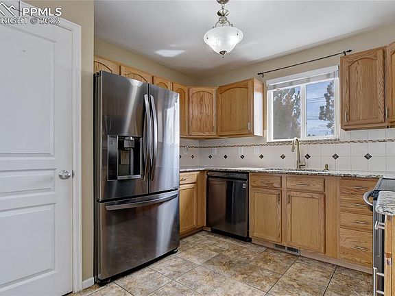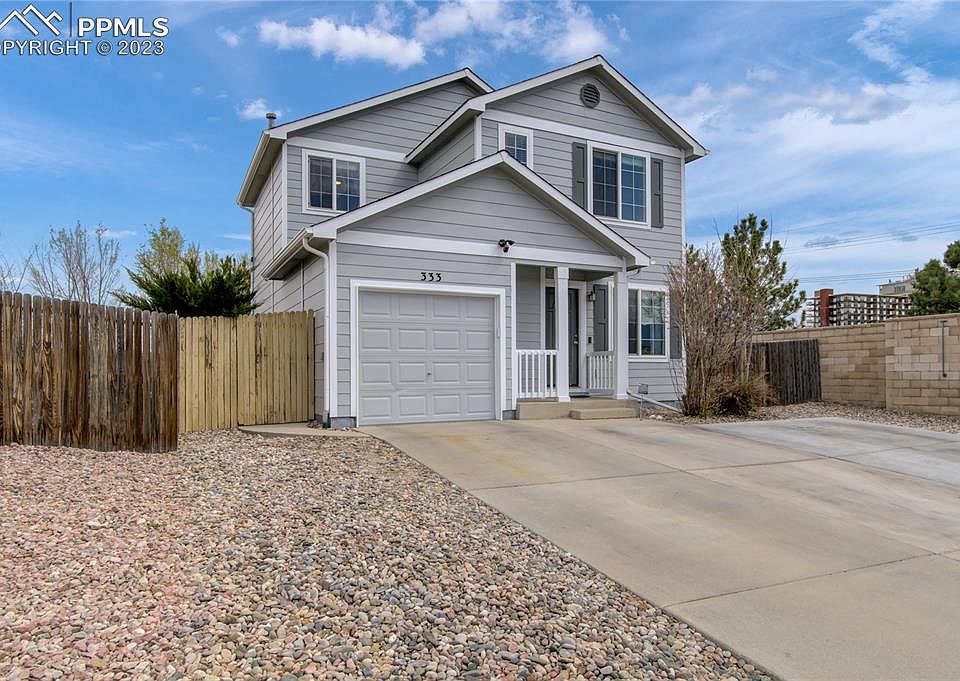 Corner lot with splendid 2 story home. The main level features tile flooring throughout the living room, kitchen, and walk-out dining room with garage access. A barn door opens to laundry space and powder room. Upstairs is comprised of the primary suite, two additional bedrooms, a full bath, and a ¾ bath with tiled standing shower. In addition to the single car garage, this home offers an extra wide driveway. Within a 10m minute drive of numerous local adventures such as Valley Hi Golf Course, Memorial Park, shopping centers and downtown Colorado Springs.