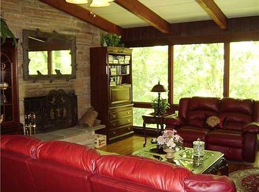 Unique design Ranch in a peaceful setting in sought-after Peters Township School District. Open Kitchen with Stainless appliances included. Vaulted, beamed ceilings and LR Wall of windows. Open flow floor plan. Double entrance UL bath; 2 Woodburning Fireplaces. Large Master Suite with Bath, FP and walk in closet. Terrific multi-level deck with lovely treed view overlooking a nice yard. Garden waterfall and koi pond. Loads of storage room. Washer, Dryer & Home Warranty included. See inside to appreciate.