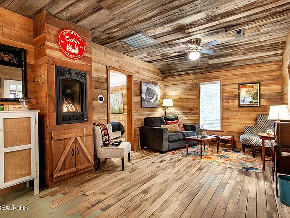 Nestled in the heart of a vibrant mountain town, just a stone's throw away from the main strip bustling with activity, sits a charming fully furnished cabin offering the perfect blend of rustic charm and modern comfort for those seeking to immerse themselves in the excitement and adventure of their surroundings. This cozy retreat serves as a gateway to a plethora of attractions, from quaint shops and eclectic eateries to thrilling outdoor adventures, ensuring that every moment is filled with excitement and possibility. Your new cabin offers many updates including fresh paint, new plumbing throughout, septic system, and much more. The exterior of the cabin boasts a classic log-cabin design, with sturdy timber beams and a warm, honey-colored wood finish that blends harmoniously with the natural surroundings. Kick back and relax in the screened in the inviting front porch adorned with rocking chairs, perfect for savoring morning coffee or evening sunsets. Stepping inside, guests are enveloped in the warmth and comfort of the cabin's inviting interior, thoughtfully designed to provide a cozy haven amidst the excitement of the town. A spacious living area serves as the heart of the cabin, featuring plush sofas and armchairs arranged around, creating the perfect ambiance for relaxing after a day of exploration. Adjacent to the living area is a fully equipped kitchen, complete with appliances and ample counter space for preparing delicious meals. A charming eat in kitchen offers the perfect spot to enjoy home-cooked dinners or intimate gatherings with loved ones, with large windows providing glimpses of wildlife passing by outside. The cabin offers two comfortable bedrooms, each thoughtfully appointed with plush bedding and soft linens to ensure a restful night's sleep. Nestled across the street, a cleared space awaits the construction of another cabin, offering the opportunity to expand the retreat and accommodate larger groups of family or friends.