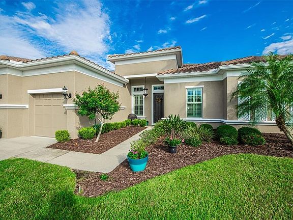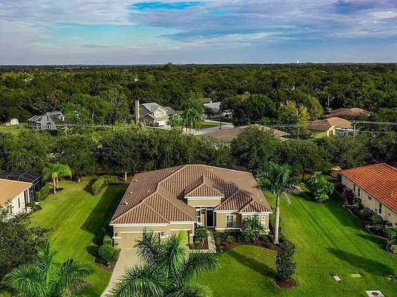 Welcome to GreyHawk Landing where relaxed weekends, picturesque parks, preserves and a friendly feeling radiates a wholesome balance between work and play. This four-bedroom residence built in 2011 by DR Horton is nestled on a quiet street. Its 3,050 sf of living space is comprised of open spaces, casual and formal areas for entertaining, quality updates, clean-lined tile floors and comfortable rooms designed to be lived in and heartily enjoyed. The kitchen is an ode to the culinary arts with extra tall espresso-colored cabinets, center island, large walk-in pantry, granite surfaces, gas cooktop and newer appliances and light fixtures. Enjoy a latte and croissant in the eat-in area with large aquarium windows or host a banquet of delicious proportions in the formal dining room. The master suite is exceptionally spacious featuring tray ceilings, dual closets and a spa-like bath with garden tub. The outdoor area is a masterclass in Florida living. The private lanai boasts an immense covered area perfect for hosting casual afternoons or evening soirees. A TV and bar complement any game day. The sounds of the waterfall into the pool will have you savoring the moment before diving in for a refreshing swim. Lovingly maintained, the home features freshly painted exterior; plantation shutters; new lights, air handler, and gutters (2017). GreyHawk Landing is zoned for top-rated schools and includes two resort-style heated pools, athletic fields, fishing pier and miles of walking trails. Call The Milbank Team today to schedule an appointment to see this beautiful home!