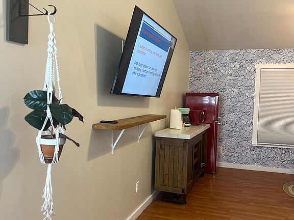Welcome to Salty Greens Farm! We are close to the beach and to the city! Stay in this unique private room with a private living room and private entrance attached to the main home! This 700 square-foot living space has its own living room area kitchenette, gym, large master bedroom with a king-size bed, and newly remodeled en suite master bath with dual showers, large walk-in closet, and smart TVs in both living room and bedroom. Entrance to your oasis is through the wood-fenced yard with a large 40-foot saltwater pool and the beautiful fancy chicken coop for free eggs daily! Shared spaces include a huge 40-foot saltwater pool, gazebo with deck, fire pit, access to our fancy chicken coop, deck with dining area, and barbecue grill all sitting on 2.5 acres of land. You can enjoy your private entrance with a keyless entry. Max capacity is one female adult and small pets are allowed with a non-refundable deposit. No smoking allowed. No parties. 1 Female Adult max capacity. Pets allowed with a non refundable pet deposit of $150 per pet. Washer/dryer not available in unit