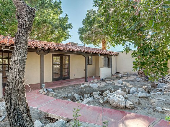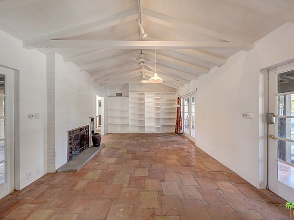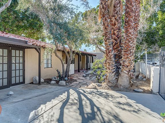 A piece of Palm Springs history awaits you with a gorgeous mountain view, only minutes away from downtown. This was the home of Jimmy Van Heusen, four time Oscar winner for best song, and good friend of Frank Sinatra who first introduced Sinatra to Palm Springs. It has been said Van Heusen wrote "the sound track of the mid-century." In addition to the main house, there are studio and workshop spaces. Renovate and enjoy the charming house plus bonus spaces; or restore it to the "leafy hacienda" from 1937 it originally was.The house features a vaulted living room with a fireplace. There are two bedrooms, one with a study attached, two bathrooms, and a large island kitchen. The finished garage has been converted to work/storage space, but only needs a new door to return to its original use. There is an additional large storage room behind the garage, and two separate studios on the west side of the house. There is a large vintage "Paddock" pool.