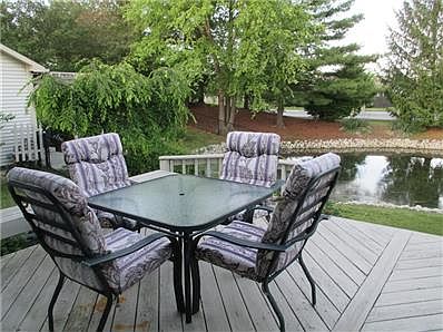 2 Bedroom 2 bath 1318 sq ft brick/vinyl home. Cathedral ceilings. Master has walk-in shower and tub, double sinks. 2nd Bedroom has Bay window. Formal dining room , large enclosed sun room, large deck overlooking pond and fountain in established neighborhood.