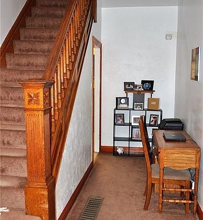 If you're looking for charm and flow this house is for you! Walk up to the inviting front porch and kick back and watch the world go by. Upon entering the foyer you will notice the beautiful original woodwork on the staircase and the pocket doors leading into the living room with decorative fireplace. Continue through to the dining room and you will notice that it has enough space for your dining table and 2 hutches, add in the high ceilings and you have the makings of one great space. The dining room flows into a nice kitchen that has ample counter and cabinet space with stainless steel appliances. This leads to your back deck and fenced in yard, perfect for entertaining! Also additional parking is available through the back. Conveniently located on the first floor is a powder room. Upstairs you will find 3 bedrooms and full bath. The third floor is a great space that can be used for whatever you want, bedroom, game room, gym, office etc. Put this one on your list!
