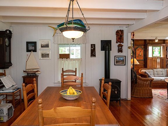 Patuisset Island location. 2 story cottage with waterviews from second floor and from the yard, sits on a level lot lined by rhododendrons. This much loved home has a large front porch, open kitchen, dining, living room, first floor bath with laundry, and bedrooms upstairs. Seasonal home has a gas fireplace to take the chill off the spring and fall nights. Stroll to Hen Cove Beach..kayak to Bassetts Island. Minutes to Pocasset Golf Club, Kingman Marina, Chartroom restaurant. Just a great location. Smell the ocean as you nap on your front porch. Passing Title V. This house is made for summer memories!