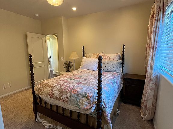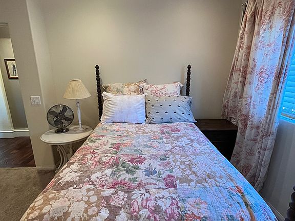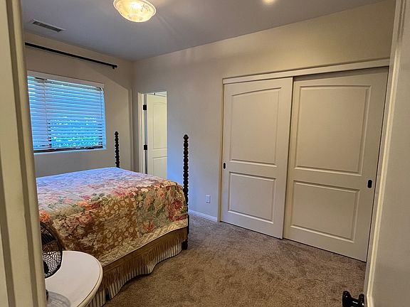 Private bedroom with gorgeous ensuite bath, large closet and 8' x 3' under-stairs storage in 12-year-old Spanish home located in the quiet hills of Santa Barbara just minutes from beach and volleyball courts, downtown Montecito, downtown Santa Barbara, Westmont College, SB Cottage Hospital, Goleta Valley Cottage Hospital and UCSB. Room is downstairs in a two-story house with full access to chef's kitchen, laundry room, dining and seating areas. Bed and bath have been freshly painted and a desk will be put in the room. Owner is a single woman. Parking available in driveway. Yard and patio area.
