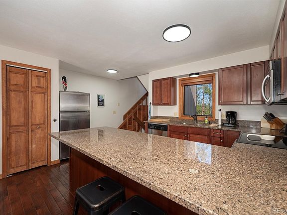 Here's your chance to own a 3b fully furnished townhome in Fraser with amazing views of the continental divide from your living room and back deck that allows short term rentals. This floor plan is desirable for many because it has a primary bedroom/bathroom upstairs (currently set up with bunk beds), two additional bedrooms and a full bath in the lower level, and an open concept main level kitchen flowing into the living room with vaulted ceilings and a classic wood burning fireplace. There are only 6 total units in this complex giving it a more private feel than seen in the larger complexes. Everything you need is close by: free city bus stop, grocery store, breweries/restaurants/distillery all super close in downtown Fraser. Price recently reduced, this fully furnished 3b is priced to sell!