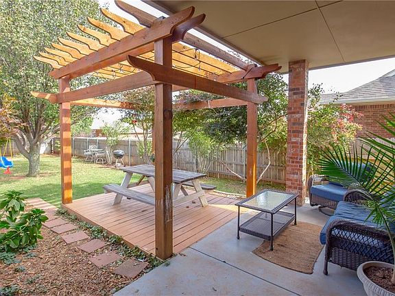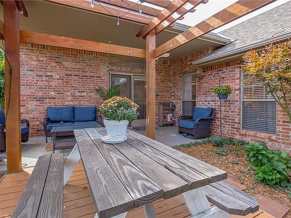 Move-in ready before Christmas! Come take a look at this freshly painted and modernized culd-se-sac home in Edmond's desirable Coffee Creek community! The rich wood floors and brick fireplace in the living room make this perfectly cozy. The living room also features beautiful built-ins and a view of the perfectly manicured backyard. The large master features his/hers vanities and large walk-in closets with a tiled shower and a whirlpool tub. The kitchen has been updated with quartz counter tops and the dining has charming wainscoting and new carpet. Enjoy your evenings under the pergola or covered patio. The large backyard has extensive landscaping of trees, rose bushes and several varieties of perennials. The popular Coffee Creek community which features, pools, rec areas, club houses, basketball courts, fishing ponds and walking trails.