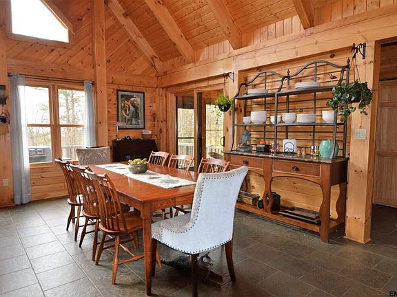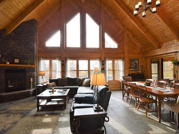 Amazing Peter Allen built post & beam home on 10 acres in a private setting. Custom home boasts Great Room w/wall of windows overlooking beautiful countryside, flr to ceiling stone fireplace, exposed beams, vaulted ceilings, Hickory cabinets, granite counter tops, stainless steel appliances, radiant in floor heat on lower level & in newer addition, 1st flr Master Suite, craft room, office, laundry room, large family room & lots of storage!! Outdoor enthusiasts paradise!! Minutes from Great Sacandaga Lake!!