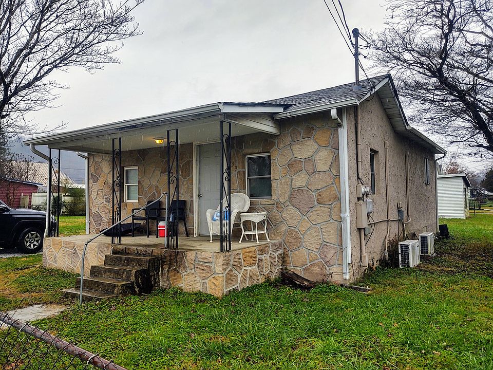 2 bedroom 1 bath with double lot and large storage building behind house. Corner lot with level fenced in yard. Newer roof and stucco siding, covered front porch. House needs some TLC but Seller said to bring offers!