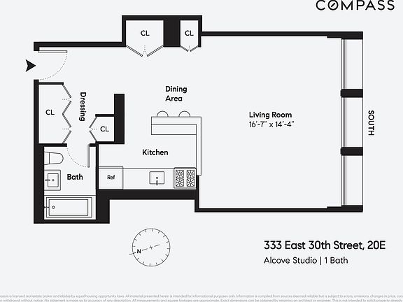 Extra-large sun drenched alcove studio at renowned I.M. Pei designed Kips Bay Towers condominium. This high floor home features huge south facing wall-to-wall windows with direct sunlight all day long with open city views, a large living area, and hardwood plank flooring throughout. The renovated open kitchen with granite breakfast bar offers plenty of cabinets and counter space. There is a separate dressing area, and four closets providing plenty of storage.