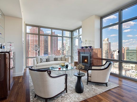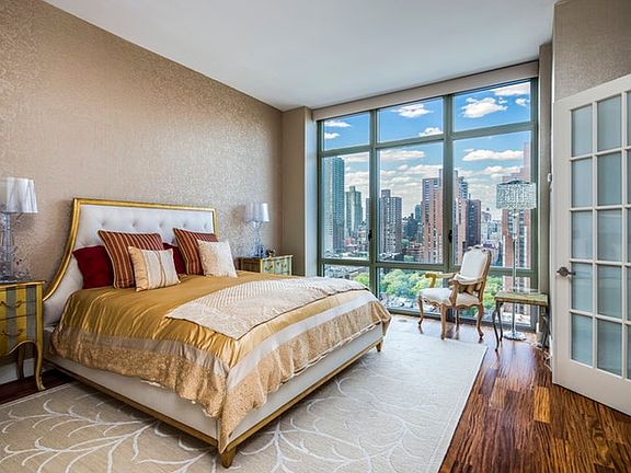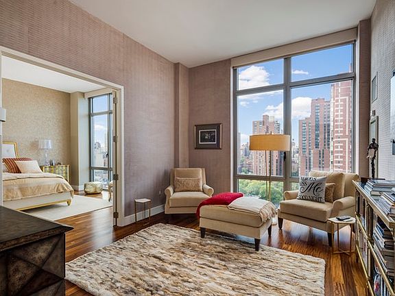 This expansive, high floor, sundrenched 3005 square foot, 4 bedroom, 4 bath home ideal for entertaining with floor to ceiling windows will take your breath away. Enter from a semi private landing with a gracious entrance foyer which leads to a huge living/dining room with a gel fuel fireplace. North, East and West exposures afford mesmerizing river and open city views from every room. Large, luxurious, master suite has two full baths, two custom fitted walk-in closets with dressers, shoe and handbag storage, separate sitting room/4th bedroom. Two additional split bedrooms each with their own bath one ensuite afford maximum privacy. Spacious, eat-in-kitchen with large dining area, center island, custom made cabinetry, Viking appliances, Caesar stone countertops, wine storage and pantry. Large family room and separate office area. Crestron audio/visual system, 10'8" ceilings, central A/C, abundant custom fitted closets (4 walk-ins), Brazilian Afromosia hardwood floors, electric blinds, sumptuous wallcoverings and fixtures and Bosch washer/dryer. The Azure located on the coveted Upper East Side near Carl Schurz Park and the new Second Avenue subway is a 24 hour doorman/concierge pet friendly condop operating under condo by-laws. Amenities include, state of the art fitness center, two landscaped roof decks, cold storage, residents lounge, game room, conference/dining room with adjacent kitchen, 1500 SF playroom and bike room. Apartment transfers with private storage unit. A very special home awaits you. Seller is offering a credit of 50% of the maintenance costs for a period of 1 year. The actual maintenance is $7,686 and the reduced maintenance for the first year is $3,843 per month.