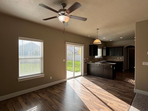 Yes, that's new carpet throughout and new exterior paint on this central Meridian home. This 3 bedroom home has a living room with fireplace and a second loft space upstairs. The kitchen overlooks the large fully fenced back yard with lots of open space. The primary suite upstairs has a large 17x12 bedroom with en suite bath with jetted tub, dual vanity, and walk-in closet. Downstairs also has laundry room and half bath. Tenant pays all utilities, 12-month lease, no smoking, pet friendly