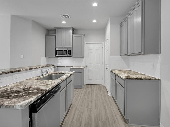 Discover modern elegance in this stunning 3-bedroom, 2.5-bath home, newly built in 2023 and thoughtfully designed for today's lifestyle. Located in the heart of Woodlands Lake, this home offers a bright open-concept layout, a sleek kitchen with granite countertops and stainless steel appliances, and a spacious first-floor primary suite with double vanities and a walk-in closet. Enjoy a beautifully sodded backyard with a covered patio perfect for relaxing or entertaining.