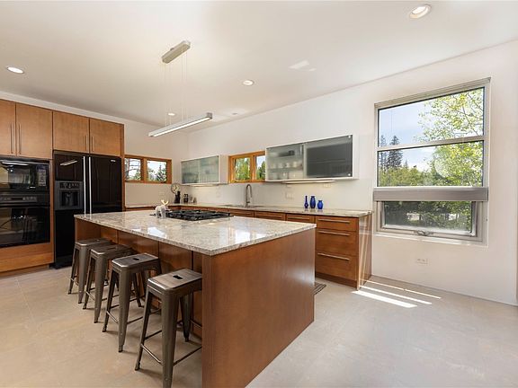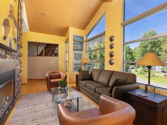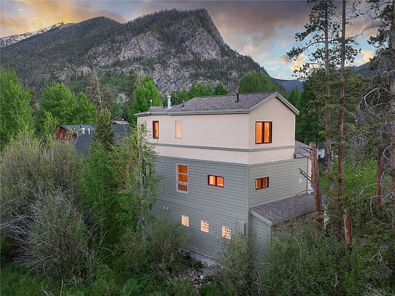 Located on the highly coveted, Emily Lane, this residence stands as a beacon of clean-line modernity. Showcasing picturesque views of the Continental Divide and the Ten Mile Range. The elevated living area offers privacy without sacrificing in-town convenience; located four blocks from Frisco Main Street and across from the local’s favorite, Walter Byron Park. Upon arrival, you are welcomed by the splendor of the mature gardens that are surrounded by majestic pines that stand guardian. Entering the solid wood/glass front door you will be delighted by the open stringer and clean lines of the cable rail staircase. Artisan finishes and expansive windows serve as a gateway for the outdoors to become an integral part of the interior. The kitchen features sleek and modern cabinetry, high-end appliances, two ovens, Artimede light fixtures, and ample counter space. The primary suite offers warmth and solitude with wood-lined ceilings, corner windows capturing the views, French doors, and dual closets designed with ample storage and built-ins. The primary bath is enhanced with Artimede light fixtures, sinks from Spain, Hansgrohe faucets, euro glass shower and a contoured jetted tub. Guests will have ample space in the luxurious guest suite with a private en-suite bathroom. Oversized heated two-car garage and in-home security system. The contemporary design and exceptional finishes makes this residence a truly distinctive Frisco opportunity!