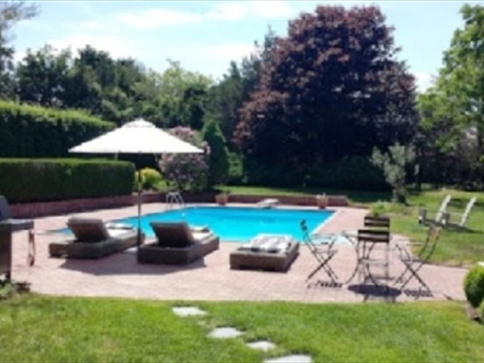 Within minutes to famed Flying Point Beach, this light and bright renovated home has a cathedral ceiling living room, formal dining, both with fireplaces, four bedrooms, two full baths, renovated kitchen with all brand new appliances, gorgeous backyard with lawn space for volleyball or croquet and a newly heated pool.