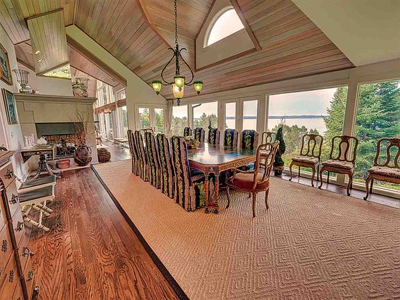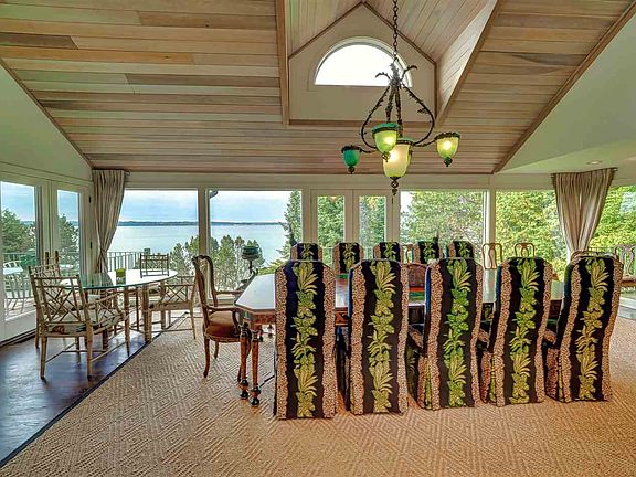 Truly one of Harbor Springs landmark properties. Located just outside the Harbor Point gate and minutes from town. As you enter through the private gate and wind your way up the beautifully landscaped entrance, it is hard to believe you are only a short walk or bike ride from all that Harbor Springs has to offer. This one of a kind property offers it's own secluded 3 bedroom, 2 bath guest house. Spectacular views of Little Traverse Bay greet you the second you walk in the front door. Modern open floor plan creates a great flow for all sorts of family time and entertaining. The main floor, as well as the lower floor, has easy access to the outdoors from virtually ever room. All bedrooms enjoy the privacy of their own bathrooms. Glass walls throughout bring the outside in. Enjoy your own very private oasis right in the middle of the most desirable neighborhood in Harbor Springs.