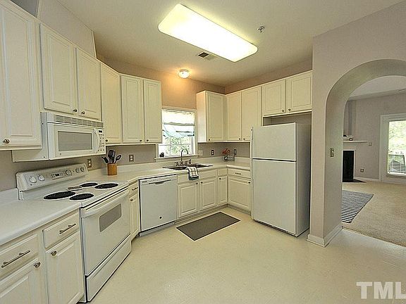Beautiful 3rd floor condo with vaulted ceilings. Natural light floods this lovely home backing to wooded views. Enjoy coffee and look for deer off your private deck. 42" cabinets with eat in kitchen and separate dining. Arched doorways, smooth ceilings, skylights, gas log fireplace. Beautifully painted in neutral tones with fresh paint in baths. New HW 2018. Highly desirable location within Cary - 2 miles to DWTN Cary, .3 miles to accessible Cary Greenway. Easy access to I-40, Raleigh, SAS and RTP.