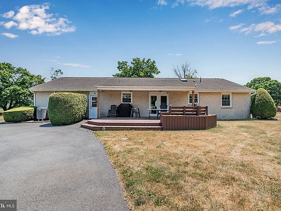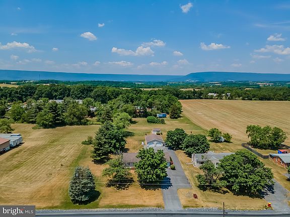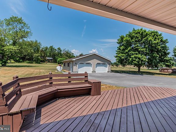 CAR ENTHUSIASTS TAKE NOTE! Nestled between the mountain ranges on almost 1 acre, this brick ranch home offers extraordinary countryside views, a level yard, attached 2 car PLUS a huge detached 2+ car garage with electric & heat, covered pavilion, shed + LOADS of offstreet parking absolutely a perfect fit for the car buff any car buff! Covered front porch greets and opens to a bright nicely sized living room with ceiling fan and large bay window. The fully equipped kitchen flows to the dining area that looks out over the spacious rear yard. You'll love the finished game room space in the basement, perfect for a pool- ping pong or card table. The primary bedroom includes a private full primary bathroom with separate closet. The focal point in this home will be in the warm weather months, sitting on the expansive deck, relaxing with the mountain/country views. Countryside appeal yet closet to highways and local shopping. Don't miss out...call today!