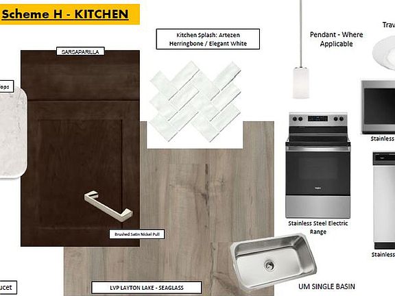 Beautiful Townhome has 9' First Floor Ceilings. 42" Sarsaparilla Kitchen Cabinets, Beautiful Helix Quartz Countertops, Layton Lake, Seaglass Luxury Vinyl Plank Flooring. Kitchen back splash is Artezen, Herringbone / Elegant White Tile. Enjoy the Primary Bathroom Shower surrounded by the same Ice White Glass, 4" X 10" tiles with glass door. 2 Pendant lights over kitchen island gives an updated style while entertaining your family and friends. Enjoy Whirlpool Stainless Steel Appliances and single basin Stainless Steel kitchen sink.