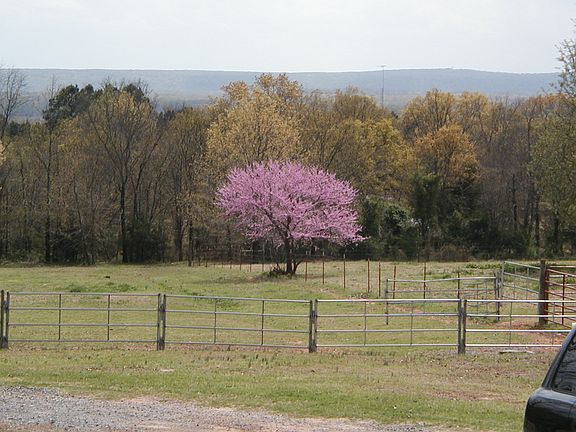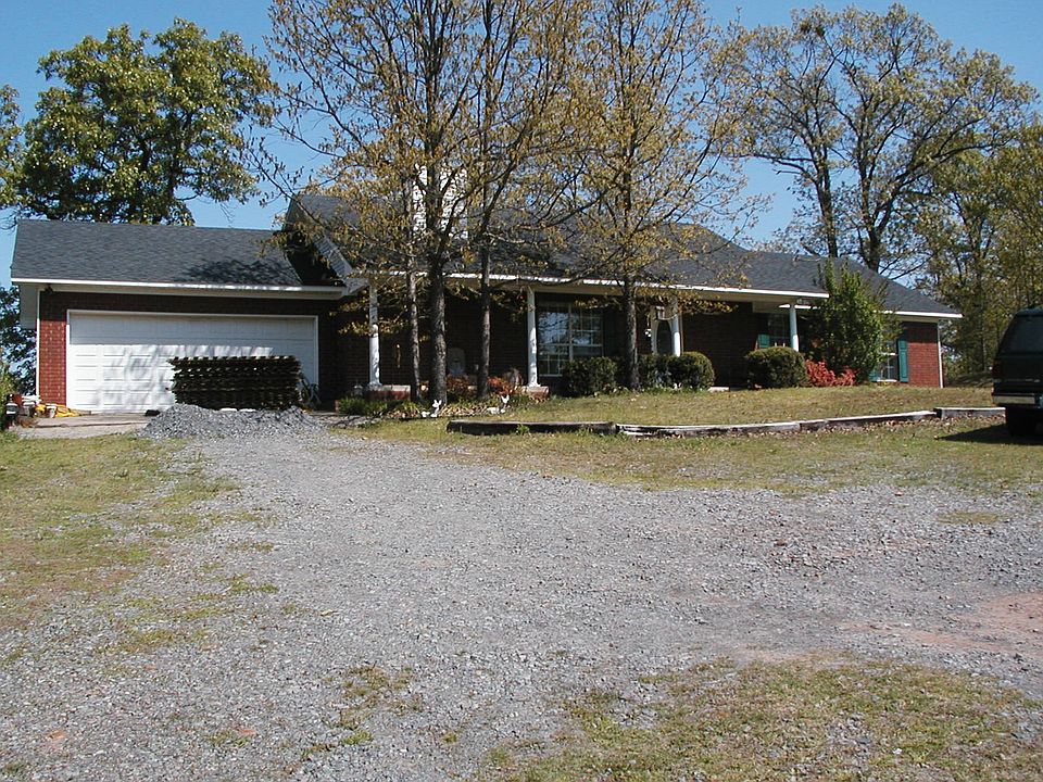 This 1800 sqft brick and vinyl home has 3 bedrooms, 2 baths, a large open concept family/kitchen/dining room with vaulted ceiling and wood-burning fireplace, a laundry room and large pantry. It sits on 21 acres in a private setting. There are 2 barns and pastures for horses. Connected to city water.