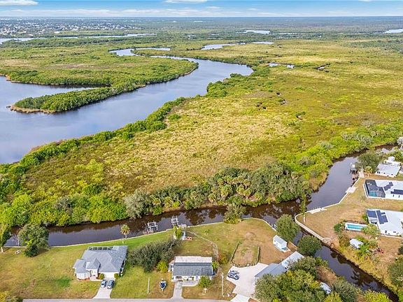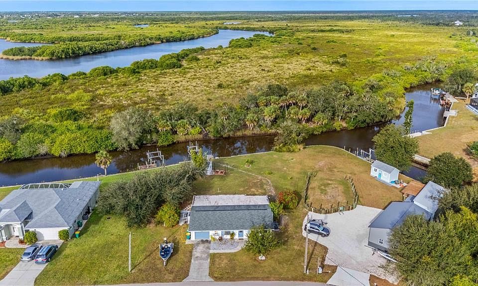Welcome to your piece of paradise in the highly sought after community of Peace River Shores. This home offers the unique combination of affordability, great water access to the Harbor/Gulf, and yet when so many others had flooding issues this home did not! Furnishings and household items are included in the sale giving you a fully furnished and truly move in ready home. Perfect for a winter retreat, seasonal rental, or year-round living alike. The property sits on an oversized lot with 130 ft of waterfrontage featuring a new 6,000 boat lift and a treated 12x8 wood dock that will allow you to quickly access nearby waterways. A few key highlights of the home include a 2022 NEW AC, 2023 NEW ROOF, updated/newer windows, newer doors/trim for energy efficiency, fresh interior & exterior paint, and a high quality artesian well with reverse osmosis (RO) and water softener. Once inside you will be welcomed by a well thought out layout that makes great use of the space this home offers. The living room and dining room are both large enough to accommodate family and friend gatherings and the kitchen overlooks the oversized Florida Room where you can enjoy your morning cup of coffee or watch the sun set in the evening. Both guest bedrooms are well sized with room for king beds and the master suite offers pocket slider door access to the Florida room (as does the dining room). There is also a detached block 14x10 workshop for storage, and an oversized 1 car garage with laundry and built in cabinets. Unlike other homes “in the city” with neighbors directly across the canal from you, this property offers additional privacy, tranquil living in a country setting with plenty of wildlife around, yet still has nearby shopping and highway access. The HOA here is completely optional but does provide several benefits for only $100/year. Contact your agent for a private showing today before this stunning property is gone.