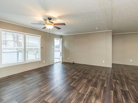 Experience modern living in this 2021 manufactured home, perfectly situated on over an acre. This 3BR/2BA dwelling offers a spacious and inviting space with no upgrade overlooked in this charming farmhouse-style aesthetic. Inside, the open-concept plan is adorned with shiplap details and boasts built-in bookshelves and sliding barndoors in the great room, for a clean a modern appeal. Luxury vinyl flooring flows though the main living areas, creating a warm and low-maintenance atmosphere. The heart of the home is a huge kitchen featuring an oversized island with a breakfast bar, floating shelves, an abundance of cabinetry, stainless appliances, plus a generously sized dining space. The owner's suite is a large luxurious retreat with dual sinks, a freestanding tub, and a separate shower, providing a spa-like experience. The utility rm features a large built-in drop zone, adding functionality to daily tasks. Outside, enjoy multiple deck spaces, including one with a pergola, plus a spacious patio in front, provide the perfect backdrop for entertaining or simply enjoying the peaceful outdoor space. Not on permanent foundation, please call for financing options.