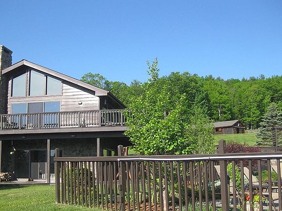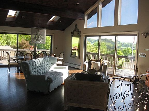 Gated Estate. 42 acres with contemporary 3,800 sq.ft. house, 3 car garage, guest/caretaker cottage, pool house & pool, and an equestrian barn with 4 stalls and heated tac room. The property has expansive valley sunrise views, wooded area and grazing lawns, a pond with screened gazebo and approx. 40 acres fenced in. House renovations in 2015 to the open plan home with wrap-around decks include a state-of-the-art kitchen and a large en-suite master bath with copper tub and steam shower. Four bedrooms, 3-1/2 baths. Special features include central air, two stone fireplaces, wet bar, sauna, cathedral ceilings, floor to ceiling windows. Come fall in love with this unique estate.