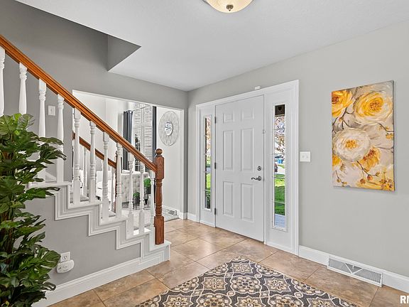 Don’t miss this spacious 4-bedroom, 3.5-bath home located in the sought-after Breckenridge Estates subdivision in Chatham. Situated on a cul-de-sac and backing to a tree line, this home offers privacy with no backyard neighbors in sight. The property features a desirable 3-car heated garage with screen door and a finished basement with daylight windows overlooking green space. Inside, you’ll find a bright and open layout with vaulted ceilings in the living and dining rooms, and a large family room with wood floors, a gas fireplace and wall of windows. The kitchen is outfitted with black granite countertops, glass tile backsplash, pantry, stainless steel appliances, and direct access to an expansive deck and concrete patio—perfect for outdoor entertaining. Primary suite has trayed ceilings, walk-in closet, jetted tub, walk-in tile shower with seat and double vanity. The lower level includes a large recreation room, a fourth bedroom, and a full bath. Extras include a whole-house humidification system, radon mitigation, and a security system (not used by the current owner). Recent updates include a new roof (tear-off, 2024), water heater (2022), and both sump and sewage pit pumps (2024). It is conveniently located within walking distance to Chatham’s largest park and fantastic public library. Seller offering $4000 flooring/decorating allowance if negotiated with offer. Pre-inspected and move-in ready!