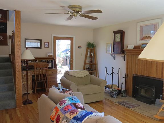 This cozy, warm and inviting cottage home is located on Residence Hill, close to downtown and nestled privately on a treed lot with a beautiful backyard, complete with deck and hot tub. The home has been updated with wonderful wood floors on the main level with remodeled kitchen and a great wood fireplace in the living room for those chilly winter days. Upstairs you'll find 2 bedrooms and a remodeled full bath. Ample storage and the laundry are in the basement along with a detached single stall garage complete this wonderful property. All measurements are approximate.