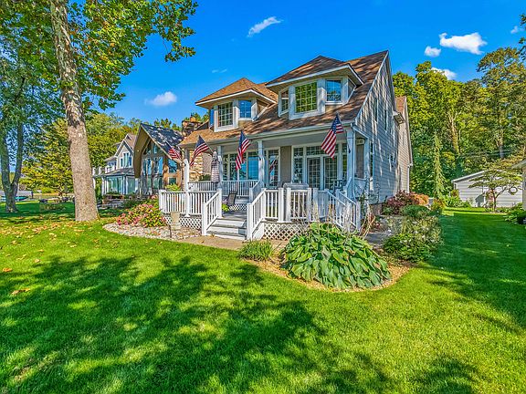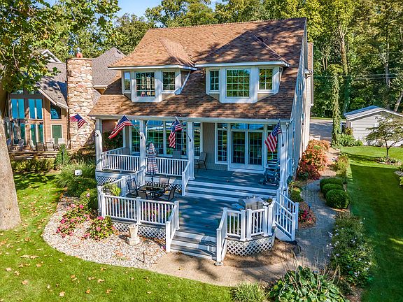 Located on private Kope Kon Pte this 5 bed 4.5 bath custom built Bob Buescher Home is waiting to be yours. Home features a 3 car heated attached garage, two staircases, foyer entry with double closet, custom designed kitchen with granite countertops and built-in appliances, walk in pantry, main floor laundry room with custom cabinetry, custom built-in entertainment center, 9 foot ceilings, whole home surround sound, security system, Pella windows, master bedroom overlooking the water, master bath with double sink, jacuzzi tub and walk-in closet, entertainment room with full bar, sprinkling system, custom double level Trex deck, paver patio with concrete seawall. A stunningly beautiful location for a lake residence with a private drive and designated preserve across the street. Call today!