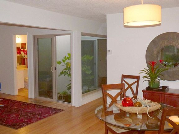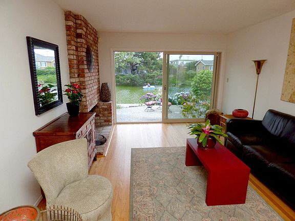 Stylish single level duet home with beautiful and serene lagoon views!! Located within walking distance to the beach, South Shore Center and many shops and restaurants! Featuring hardwood floors, a fireplace, upgraded kitchen w/granite counters, a bonus area/den, large patio right on the water, a two car garage and a lovely atrium for added light and airflow. Don't miss out on the opportunity to live in this coveted area!