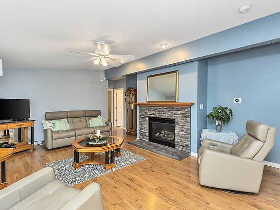 This charming meticulously maintained home is located in the Lovely 55+ Ledgewood Community! This home offers three bedrooms, two full bathrooms, with garage on the end of a cul-de-sac! Essential appliances include a dishwasher, dryer, microwave, gas range, and washer, along with an irrigation system and smoke detector. Interior highlights modern flooring, blinds, ceiling fans, a dining area, and a gas fireplace. Natural light, skylights, and vaulted ceilings enhance the space, with the master suite offering a walk-in closet. The exterior deck is perfect for your morning coffee! Community amenities include a clubhouse, landscaping, and snow removal services. Paved parking ensures convenience. Showings begin at the Open House from 1pm-3pm on Sunday, May 19th!!!!