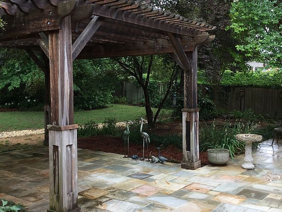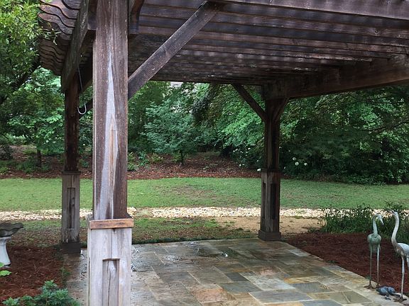 3 bedroom, 2 bath, 10' ceilings, hardwood and carpet floors, oak cabinets, HUGE laundry room, huge sunporch, garage with storage room, slat tile back porch, beautiful cypress pergola, gas heat and hot water. Jetted garden tub and security system.