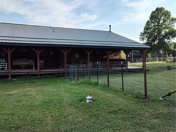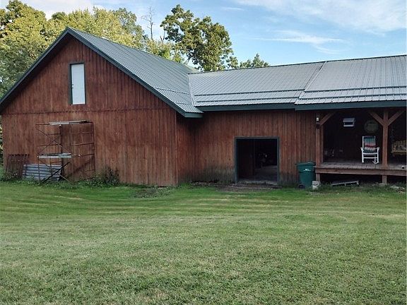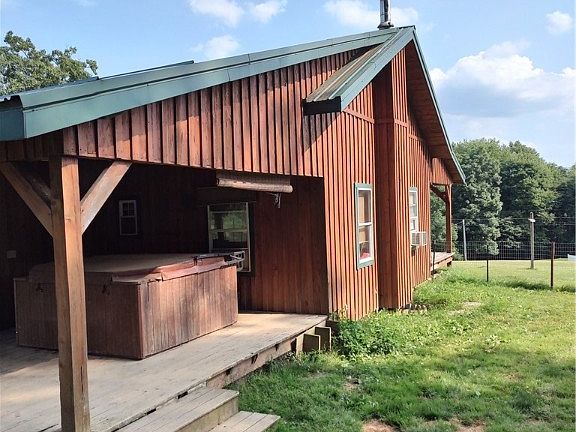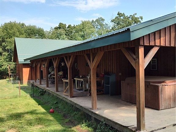 One level log Ranch, 1.8 acres, beautiful countryside, Freeport Area Schools. Amish built front,back porches, 11 foot high ceilings w/Oak barn wood beams, Spiral staircase to basement, 12 course foundation w/cement pour, rebar every foot. Amish built 2 car garage can fit multiple vehicles,high ceiling, set up for upper level living,space. Master bedroom has been dry walled, needs flooring, master bath room has green board, needs plumbing completed. Another full bath beside 2 other bedrooms, pocket doors, Living room, Dining room need walls and ceiling completed, kitchen has tile and ceiling needs completed. Totally redone dblw, site built, hybrid, ceiling raised, Amish metal roof, There is a sitting room, office den, main level laundry room right off master bedroom. Specialty flooring in bathroom, shower ,custom sink. 22 x 22 Breezeway can be easily finished into extra room. 200 amp and 2- 100 amp circuit breakers. As Is Where Is Sale, DW, Hot Tub not functioning.