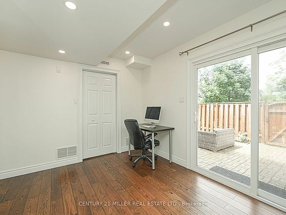Situated in the conveniently located Williamsburg complex, this three-storey, completely renovated townhome backs onto a quiet park providing ultimate year-round enjoyment and privacy. With over 1,640 square feet above grade, this is one of the most spacious units in this well maintained complex. The main floor has a welcoming foyer which leads you back to the bright home office (or potential fourth bedroom) with sliding door out to your backyard patio. A freshly renovated full bathroom and spacious laundry room are also found on this level along with inside access to the garage. The next level features all your main living space an open concept living room, dining room and completely renovated eat-in kitchen with ample pantry storage and stainless-steel appliances. This level is filled with natural light from windows on both sides. The third floor offers a generous-sized primary bedroom with walk-in closet and custom organizers as well as two additional good-sized bedrooms, all with ample closet space, and a fresh 4-piece bathroom. The fully fenced and hardscaped rear yard creates a private space for your family to enjoy. There is plenty of space for a lounging area and outdoor dining. In addition, there is gate access out to shared green space. Endless updates throughout, including upgraded light fixtures and new pot lights, hardwood floor, quartz countertops, porcelain tiles, all new trim/baseboards and new interior paint throughout. The condo has also recently upgraded many items including new shingles and windows/doors. Ideally located in the heart of Mississauga, including walking distance from Square One and Central Parkway malls. Easy access to public transit and major highways. Dont miss out on the opportunity to call this townhouse home!