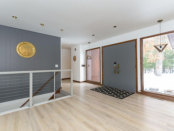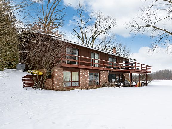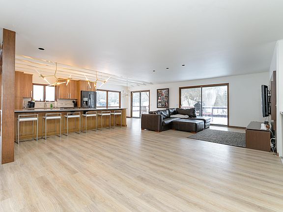 Magnificent Mid-Century modern walk out ranch on a top-10 lot on private, all sports Lake Doster! Owners have completely remodeled and updated the main floor. The living space is open and includes a fabulous new kitchen with quartz counters, custom cabinets, a huge center isle and beautiful period-appropriate lighting fixtures. The views on this home are absolutely breathtaking and are seen from virtually every room on each level! The home is approx 1,950 sq ft on the main floor and there's another 1,400 on the walk-out. 4 BRs, 3.5 baths, two master BRs! The lot is flat to the water and it's a sandy frontage. Roof, seawall and furnace all w/in the last 5 years. There remains some updating to do (baths, walkout) but this home has the potential to be one of the very finest homes on Lake