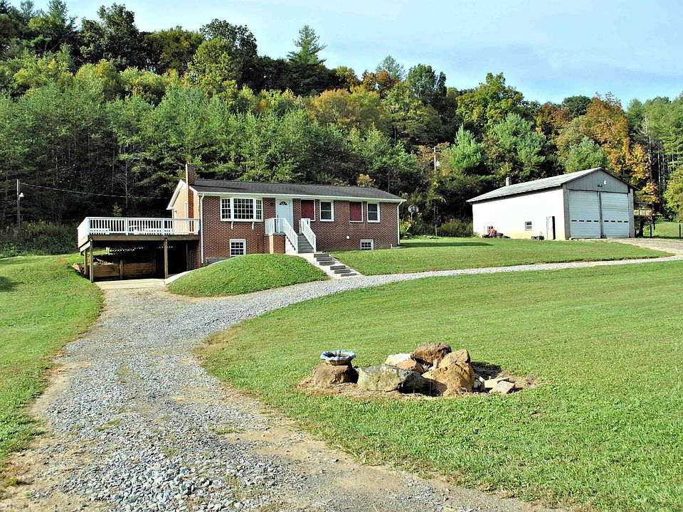 Beautiful three bedroom brick ranch on two parcels with 5.88 acres just minutes to Downtown Floyd with room to expand in the full unfinished, walk-out basement with new Heat Pump! The living room is open to kitchen and has a bay window to enjoy the view. Entertain on the very large side deck which has space below to park your car out of the weather. There is a washer/dryer hookup in the bathroom as well as the basement. The detached oversized garage has plenty of room for vehicles, large farm equipment, and space for a workshop. Move-in ready! Call for a private showing today!