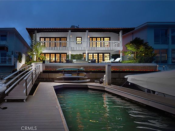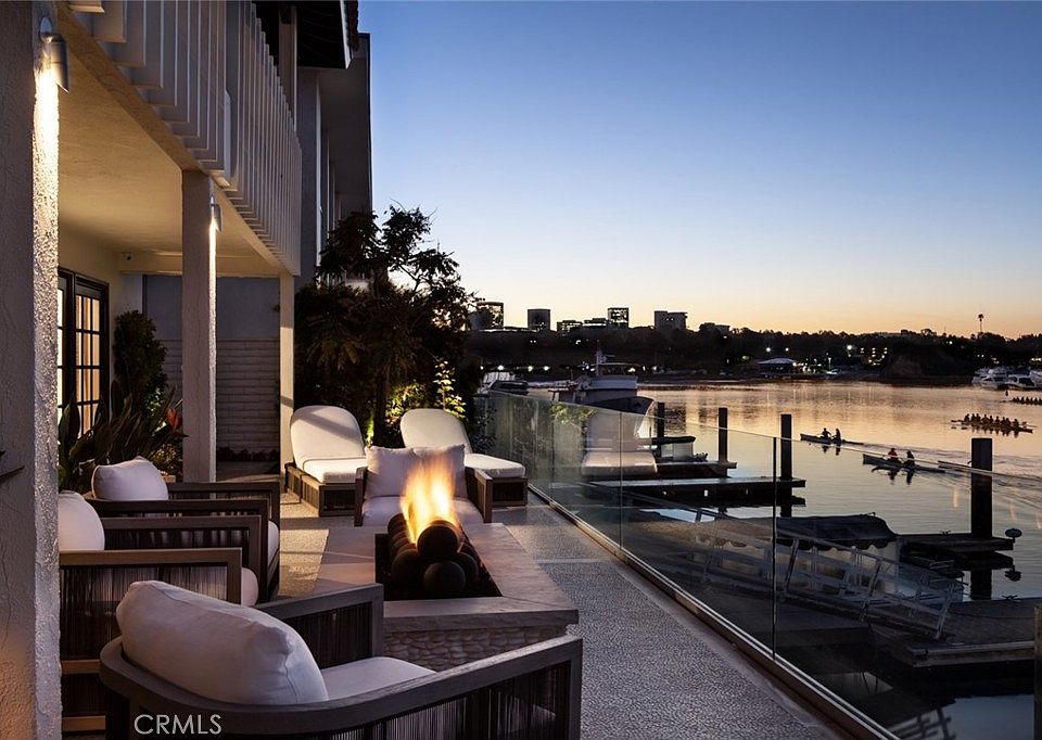 Revel in the beauty of a rising sun over sparkling waters from what is often regarded as one of the most desirable completely remodeled south-facing bayfront homes in all of Newport Beach. Enviably located on a quiet cul-de-sac street in the coveted enclave of Dover Shores, this unparalleled turnkey waterfront residence welcomes spectacular vistas of the azure horizon, glittering city lights and the shimmering bay. With appx. 60' of breathtaking frontage, the luxurious reimagined retreat includes a private dock with 3 slips that can accommodate a yacht up 60', a Duffy boat and a side tie. Sun-bathed interiors of appx. 3,912 SF are introduced by a gated courtyard featuring a contemporary fountain, lush landscaping and new decking, making it one of the most inviting outdoor living areas in the region. A step through the newer custom stained-glass entry door reveals a towering foyer, floor-to-ceiling windows, and a dramatic floating staircase that curves upwards to the versatile second-floor loft. Enjoy casual and grand-scale gatherings that guests will remember for a lifetime in open-plan reception areas that offer a new oversized temperature-controlled wine wall, a fabulously upgraded fireplace, and seamless access to the courtyard and bayside terrace beyond. Equally alluring is the newly designed chef's kitchen, where a wet bar, built-in seating, stone-topped countertops, and newer high-end Big Chill appliances combine to create the ultimate culinary experience. The main level is further distinguished by a gracious en suite bedroom and a remodeled half-bath, making guest feel as though they are vacationing at an exclusive resort. Three bedrooms upstairs include a glamorous oversized owner's suite that hosts a bay-view balcony, a sitting area, generous dual walk-in closets, and spa-like bath with a backlit walk-in shower. Completing the property is a substantial laundry room equipped with an abundance of storage, a two-car tiled garage, and an array of fine finishes and artful appointments that have been specially curated to make this home one of Newport’s most envied. Among them are custom oiled oak flooring, fully remodeled baths, textured wall coverings, new patterned carpet, new interior and exterior paint, designer light fixtures, bespoke penny-round cork accents, and crown molding. Minutes from the Back Bay, Fashion Island, and access to 3 private beaches, 333 Morning Star allows for an ultra-luxe coastal lifestyle that is second to none.