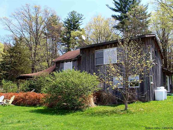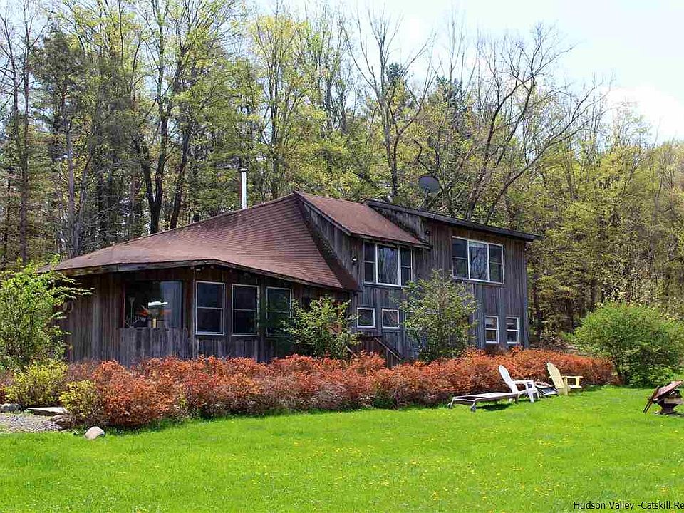 Recipe : Take one eleven acre wooded parcel, clear a bunch of acres for a large, open yard, tons of sunlight and a killer view. Gather a bunch of old barn wood and beams and build a totally unique and whimsical structure. End result is the ultimate weekender escape from the hustle of the city life. Lucky you that the owners are just too busy to use it any more. Wonderful location way back off the town road yet minutes from cool little villages like High Falls and Rosendale and New Paltz. Very unique and rustic post and beam construction in the heart of the Shawangunks. Exposed beams, lots of charm and character, big open rooms with lots of light and privacy. Looking out across the huge open yard to the full Catskill Mountain Range view. Nice outdoor space complete with fire pit and 6 person hot tub! Plenty of room for a pool, guest house, gardens or orchards.